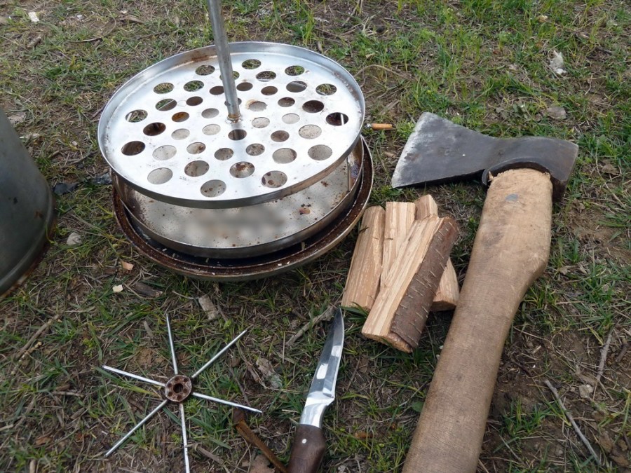 Слишком жарко можно использовать небольшой железный ящик с крышкой любой формы. Чем плотнее крышка, тем быстрее пойдет процесс. На дно ящика помещается сетка с небольшими отверстиями. Под нее укладывают щепу из ольхи, дуба или осины. Здесь можно использовать почти все три.