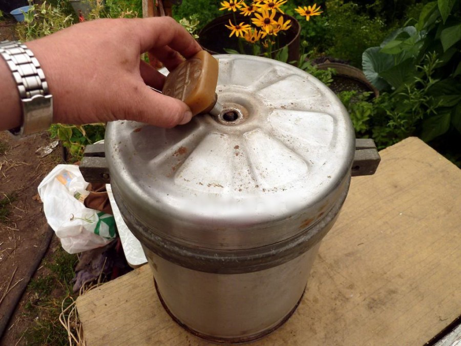 На потолке камеры нужно сделать отверстие небольшого диаметра для дымогенератора. Он может быть сделан из старого бидона, термоса или металлической трубы, диаметром 10 см и длиной до 50 см. В его нижней части отверстие диаметром около 1 см, для подачи кислорода.