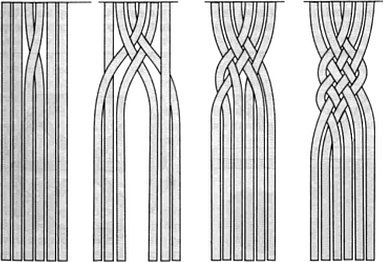 - Снова положите шнуры так, чтобы к низу плетения линии спускались в правильном порядке — первый, второй, третий шнур.