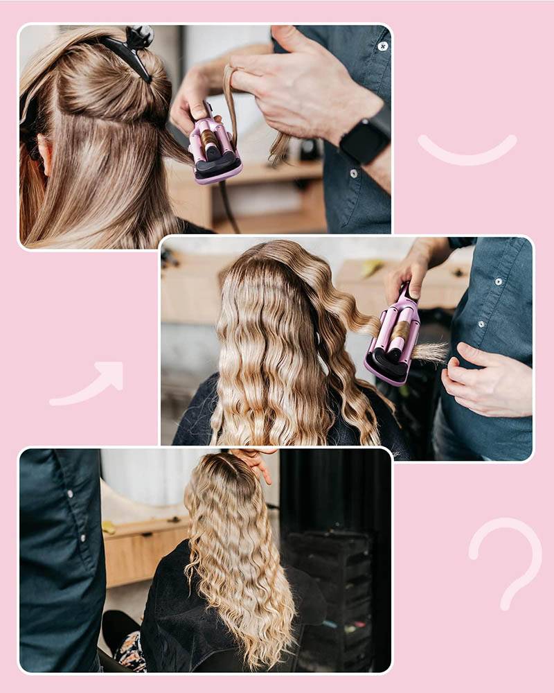 Тройная плойка — идеальное решение для тех людей, которые хотят получить эффект небрежных волн. Из-за того, что пластины у таких плоек обычно очень широкие, это также безумно практичный и быстрый способ получить легкие и естественные волны.
