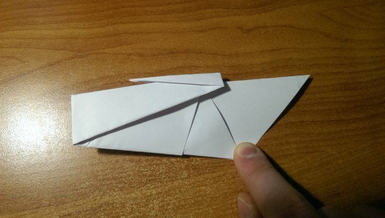 - Подгибаем внутрь треугольные клапаны в основании «хвоста».