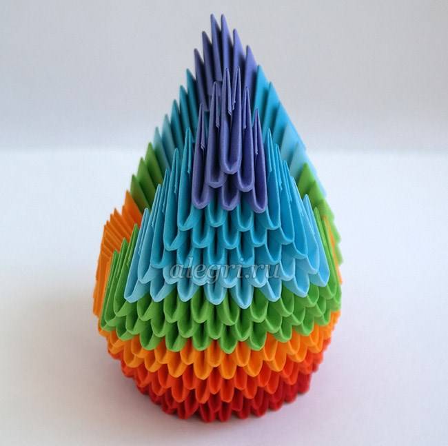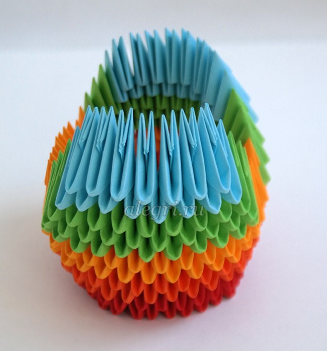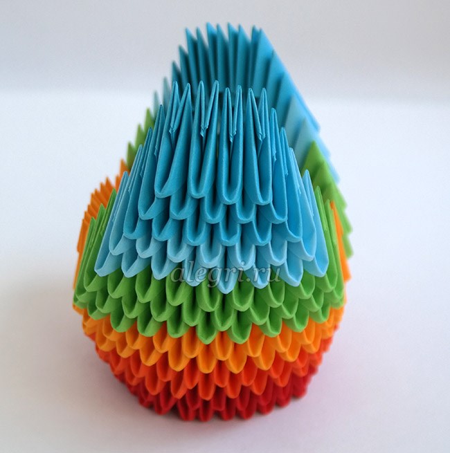 - Ряды уменьшаются, пока не останется только один модуль. После этого всю фигуру необходимо немного сжать, чтобы получился овал.