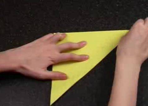 - Полученный треугольник складывается пополам, таким образом, чтобы подогнутые части оказались внутри него.