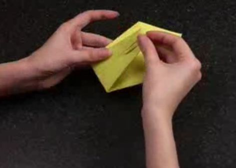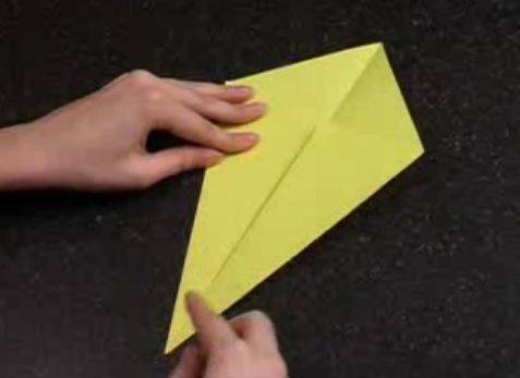- Верхний и нижний углы ромба согнуть до намеченной линии по середине листа.