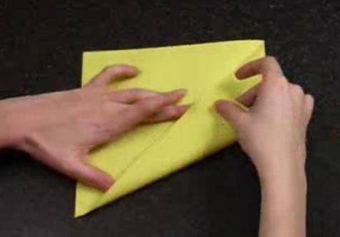 - Верхние углы согнуть к середине прямоугольника, с обратной стороны образуется треугольник.
