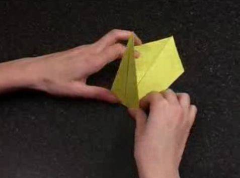 - Поднимаем нижнюю часть, как показано на рисунке, делаем обратные складки по диагонали.