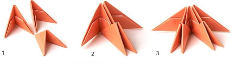Схема и поэтапное складывание треугольников модуля