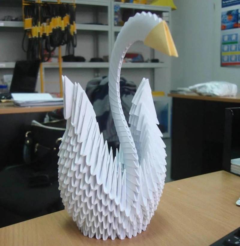 Создание лебедя из деталей или модулей очень увлекательно и необычно по своей технике. Этим способом можно собрать многое, главное чтобы работала фантазия и был настрой к такой кропотливой работе.
