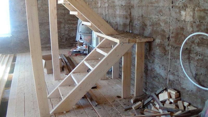 Процесс сборки деревянной лестницы