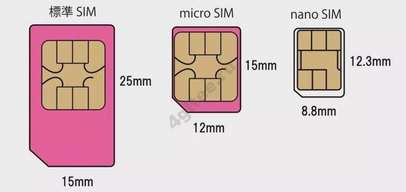 | Micro SIM | Копия Mini-SIM с укороченной длиной и шириной: 15 x 12 x 0,76 мм |