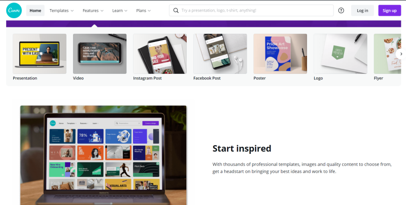 Также в рамках платформы Canva предусмотрены готовые шаблоны с цитатами. Однако можно придумывать и уникальные заголовки. Здесь имеется коллекция всех известных шрифтов, возможность добавления фигур и анимации.