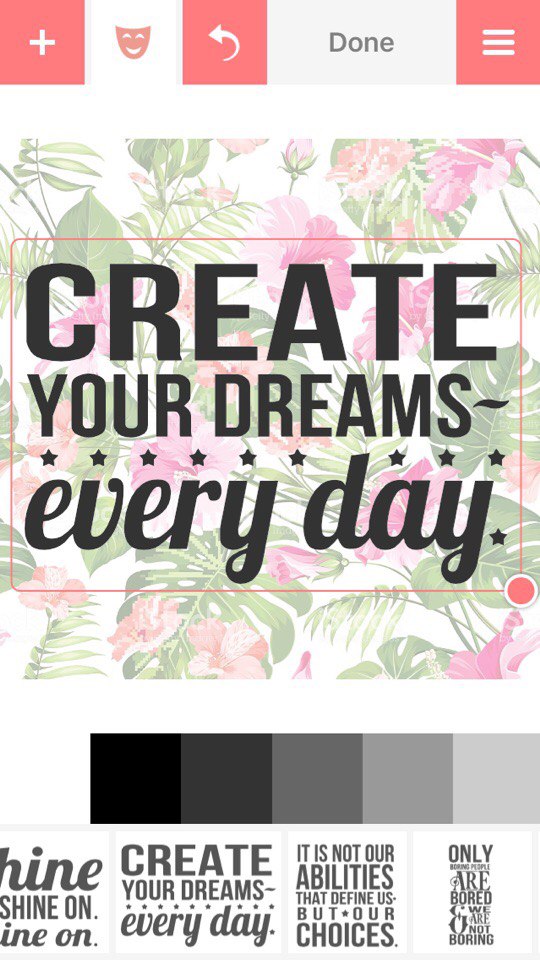 В WordSwag добавлена встроенная библиотека вдохновляющих цитат, шуток и мыслей, так что блогеру даже не нужно придумывать текст для фотографий.
