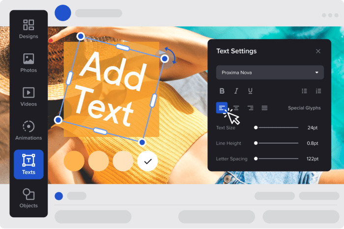 Для начала использования платформы Canva потребуется создание учетной записи. Для наложения текста на фото достаточно кликнуть по кнопке «Добавить текст », после чего настраивать стиль, размер и цвет букв по своему усмотрению.