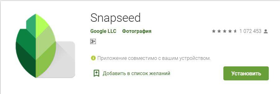 Snapseed – профессиональный редактор для текста компании Google. Это также популярная разработка, доступная как для iOS, так и для Аndroid устройств.