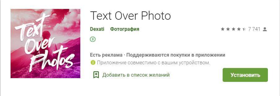 Программа Text Over Photo – название приложения говорит само за себя, и предлагает сделать надписи на фотографиях для постов. Содержит много интересных функций: