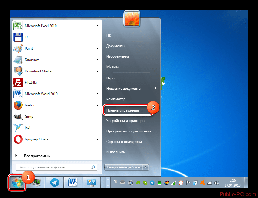1. Откройте панель управления, кликнув левой кнопкой по значку Windows, и выбрав далее соответствующий пункт.