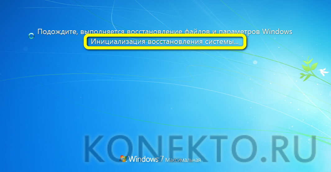 На время восстановления пользователь будет переключён на экран приветствия — на нём начнет отображаться информация о ходе процесса.