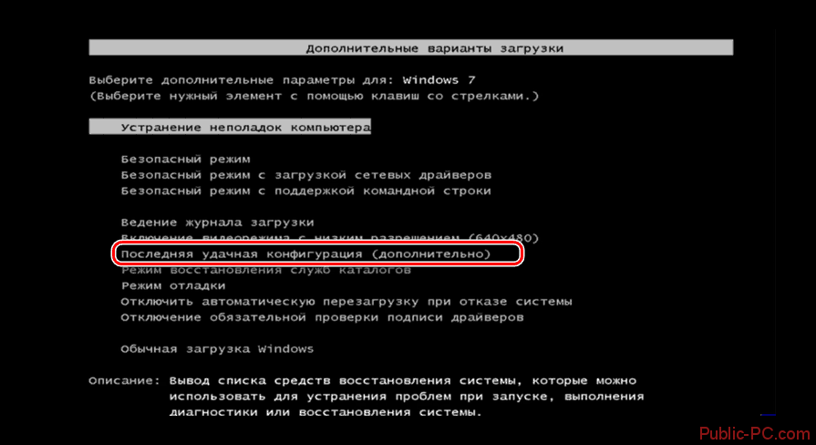 Способ 4: Активация системы с последней нормальной конфигурацией