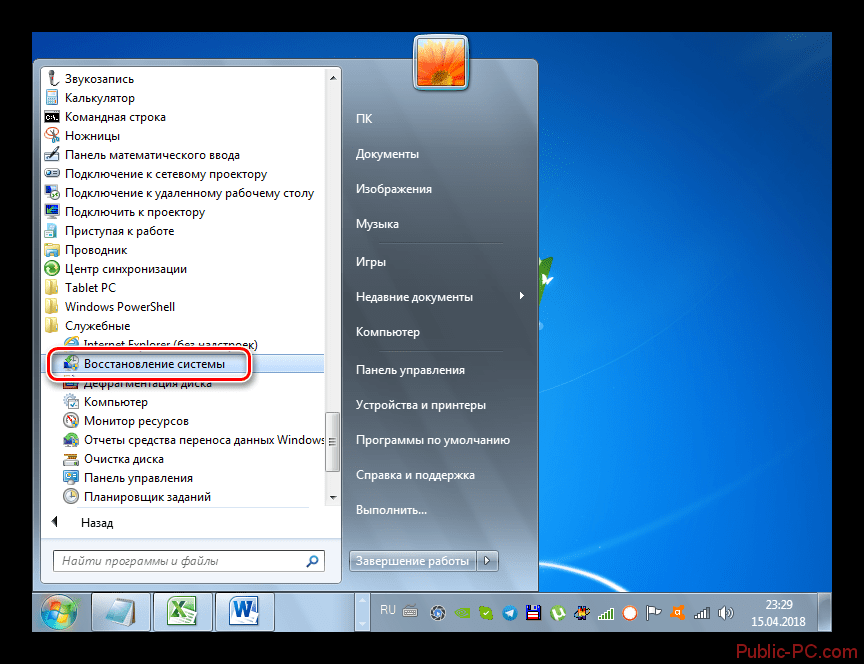 Запустить восстановление Винды с помощью системной утилиты можно следующим образом:
