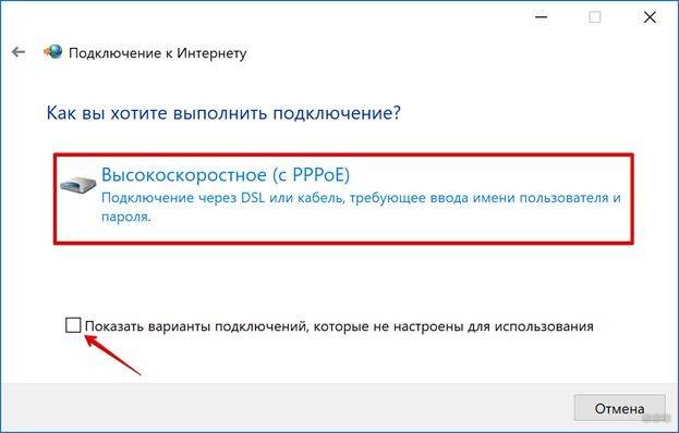 - Высокоскоростное сопряжение (PPPoE) в 10 версии Виндоус.