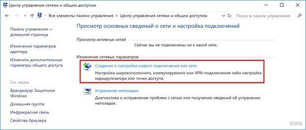 - Возвращаемся в «Центр управления сетями» и создаем новое подключение к интернету.