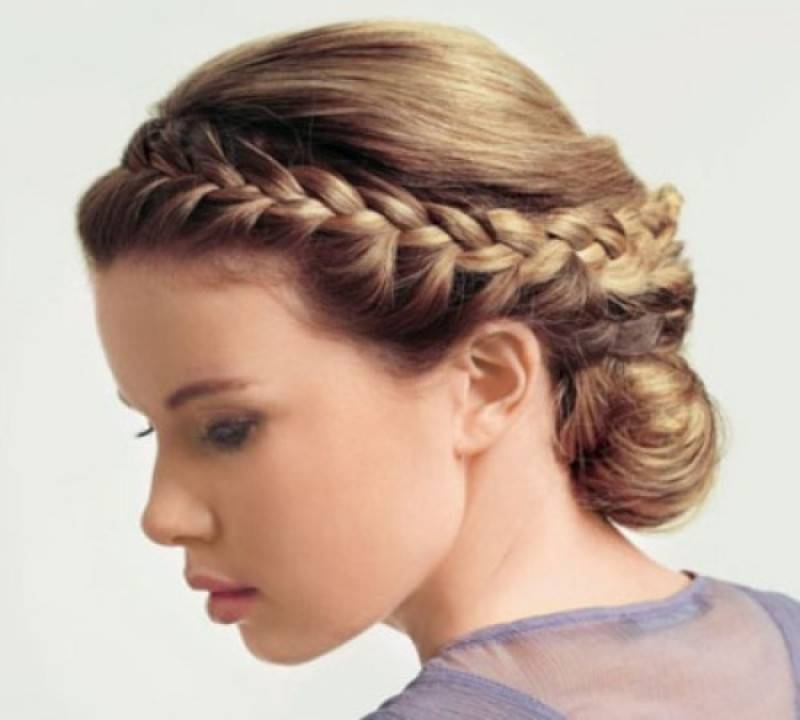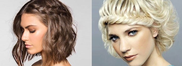 Короткая стрижка совсем не преграда для плетения кос. В форме косички можно оформить ободок из прядей при наличии длинной челки.