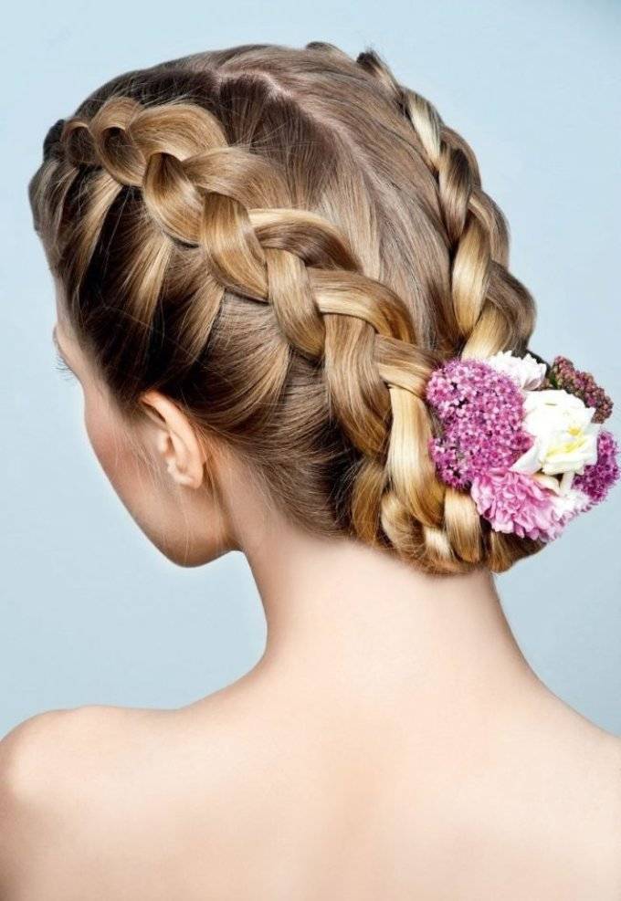 Такая прическа выглядит полностью самодостаточной, но при желании ее можно украсить маленькими декоративными цветочками – это сделает ее элегантной и торжественной.