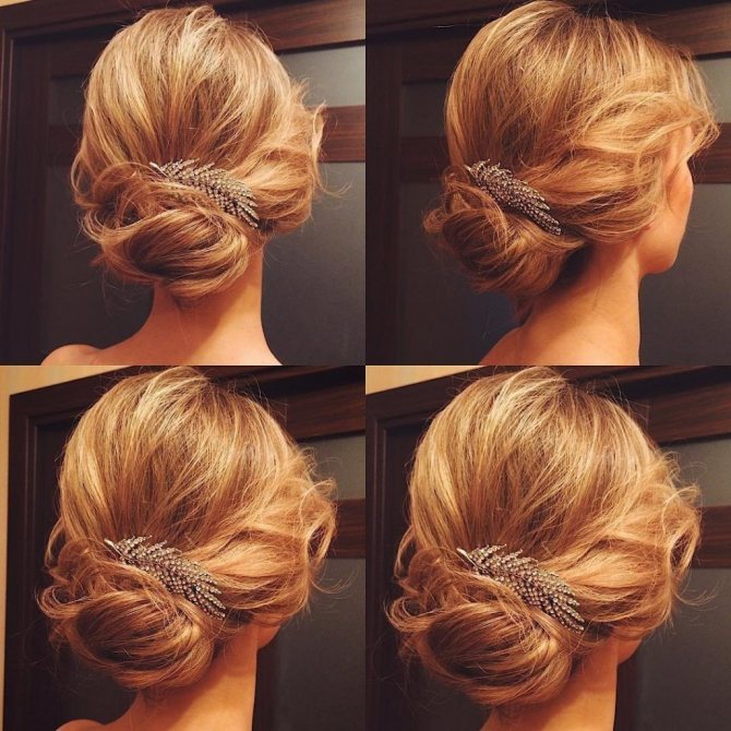 - Закрепите пряди заколками и аккуратно спрячьте концы под пучок.