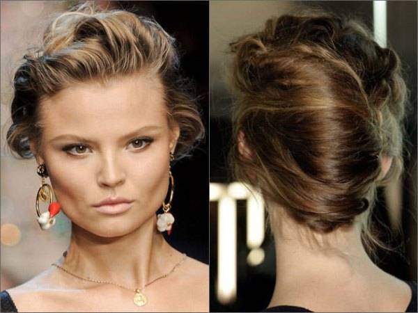 Воздушный. Как сделать пучок на короткие волосы, чтобы он получился женственным и элегантным? Достаточно лишь накрутить волосы, а затем собрать в хвост. Те пряди, которые беспорядочно выбились из прически, стоит прижать невидимками, а всю шевелюру по частям закрепить вокруг резинки. В результате выйдет очень женственная прическа, которая идеально подойдет как для повседневной жизни, так и для особого торжества.