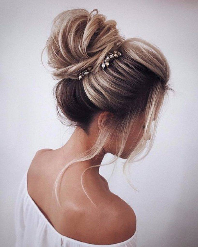 С давних времен именно пучок закрепляют на голове невесты в самый важный день в её жизни – на свадьбу. Выбор связан с тем, что на собранные волосы легче прикрепить фату. Сейчас даже те девушки, которые не используют фату, всё равно в день свадьбы делают красивую гульку. Эта прическа выглядит очень изящно и подчеркивает красоту и женственность невесты.