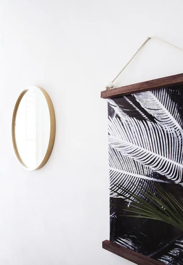 Подойдут разные варианты из дерева, например, палочки от мороженого, ненужные рейки или часть поддона. Как вариант, можно купить готовые багеты из дерева и сделать из них искусную рамку.