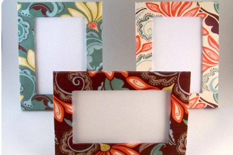- Ткань или подарочная бумага – креативно смотрится джинс или атлас, фоторамка из лент, фольги или упаковочной бумаги также станет прекрасным декором;