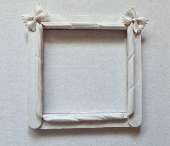 3. Для декора рамки используем макароны, приклеивая их горячим клеем.