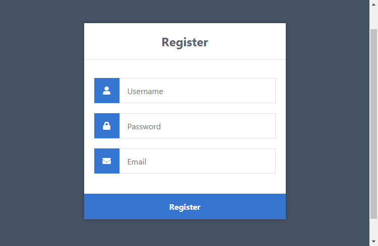 If we navigate to http://localhost/phplogin/register.html, our registration form will look like the following: