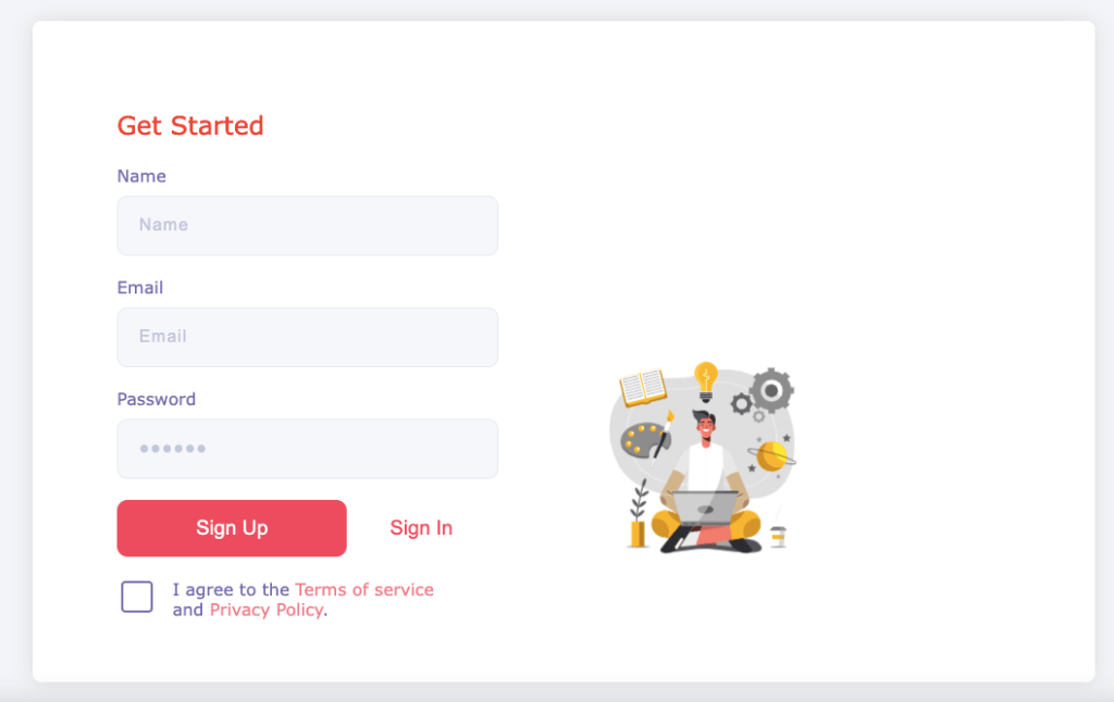The registration form will be used by our website’s visitors. They can use it to input their account information seamlessly. We’ll be creating the registration form with HTML and CSS.