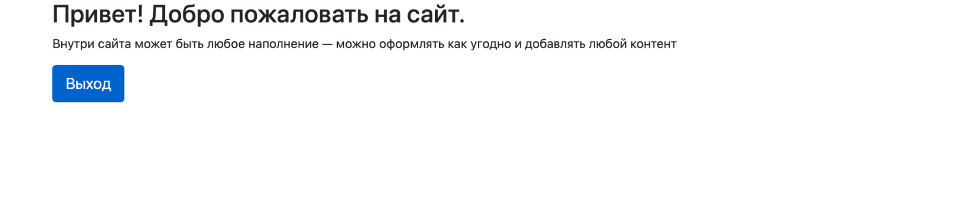 Раз мы не отправляем пока ничего на сервер, то этого уже достаточно для того, чтобы собрать готовую форму. Сразу пропишем в конце текст для тех, у кого уже есть аккаунт — поставим ссылку на страницу авторизации (её у нас ещё нет, сделаем на следующем шаге). Добавляем этот код после абзаца с пояснением на страницу: