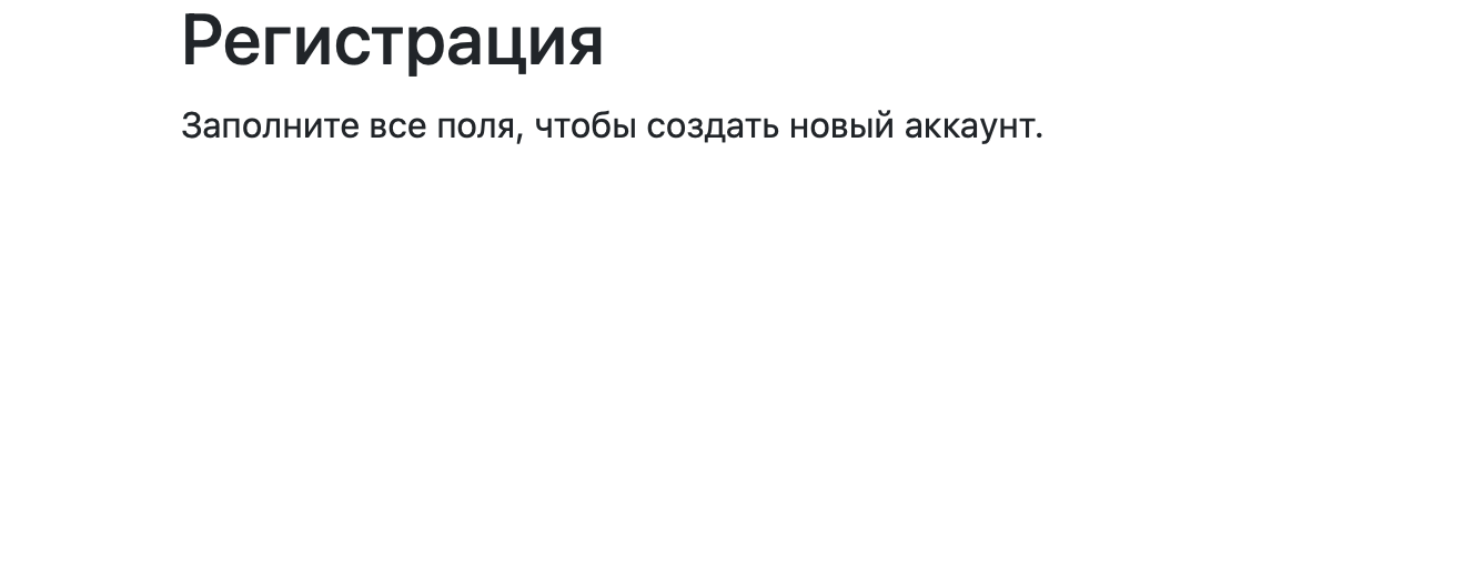 Теперь добавим форму регистрации. Форма — это набор полей, значения из которых потом отправляются на сервер и там обрабатываются. Мы не будем сегодня заниматься отправкой, а сделаем саму форму, чтобы в будущем её доработать.