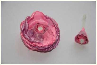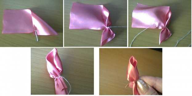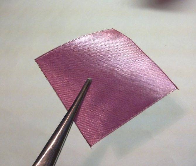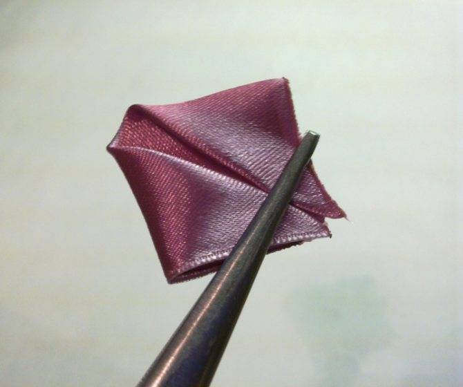 Этот способ отлично подойдет при выполнении розы из узкой атласной ленты.