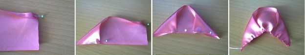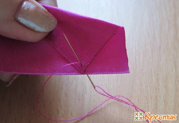 - для того, чтобы образовался бутон розы, заверните угол, прошив его несколько раз;