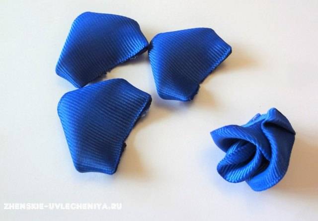 Таким способом сделайте своими руками нужное количество лепестков в технике канзаши для розы.