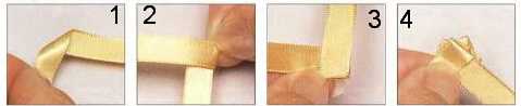 Итак, широкую ленту (от пяти сантиметров) нарезают на квадраты. Затем их тоже складывают «на уголок» по диагонали, как и в первом варианте.