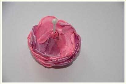 Готовый лепесток прикалываем к бутону, оборачиваем вокруг него и пришиваем к сердцевине.