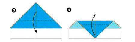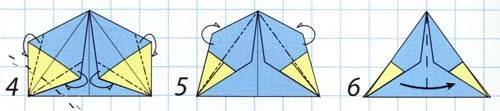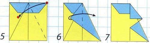 3-4. Отгибаем треугольник носа по пунктирной линии как на рисунке