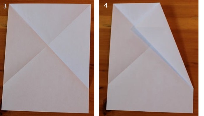 - Сгибаем лист в точке пересечения диагоналей.