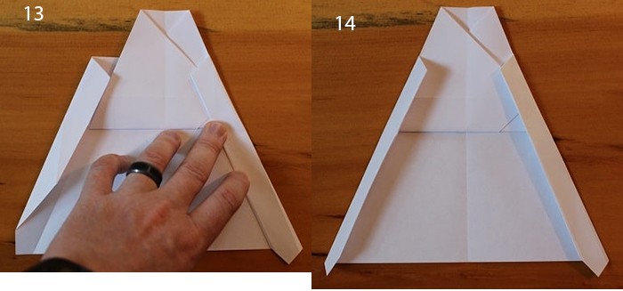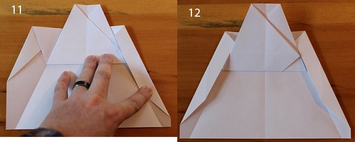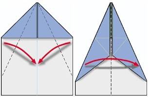 - Сворачивают края будущих крыльев вовнутрь, чтобы еще больше заострить нос.