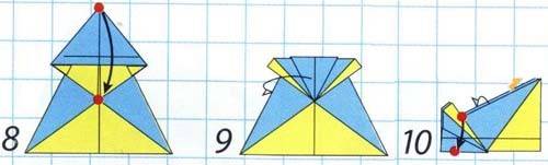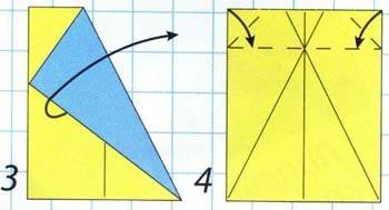 - Вершину фигуры загибаем вниз, чтобы она касалась основания треугольника.
