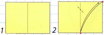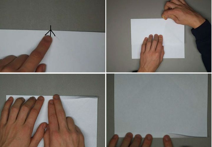 - Делают пометки центра листа, загибают верхние углы.