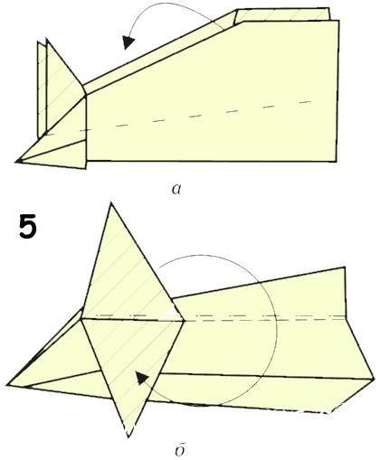 - Согните угол от себя, сложите самолет по центральному загибу.