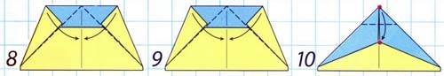 - Сложите по нему внутрь боковые треугольники.