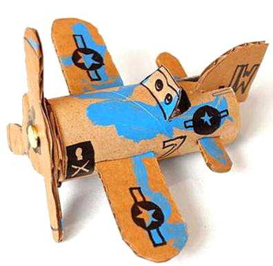 Перед тем как сделать из картона самолет, нужно найти: твердую картонную трубочку, оставшуюся после использования туалетной бумаги, лист гофрированного картона, простой карандаш, ножницы, нож, фломастер или краски, кисточку, простой карандаш.